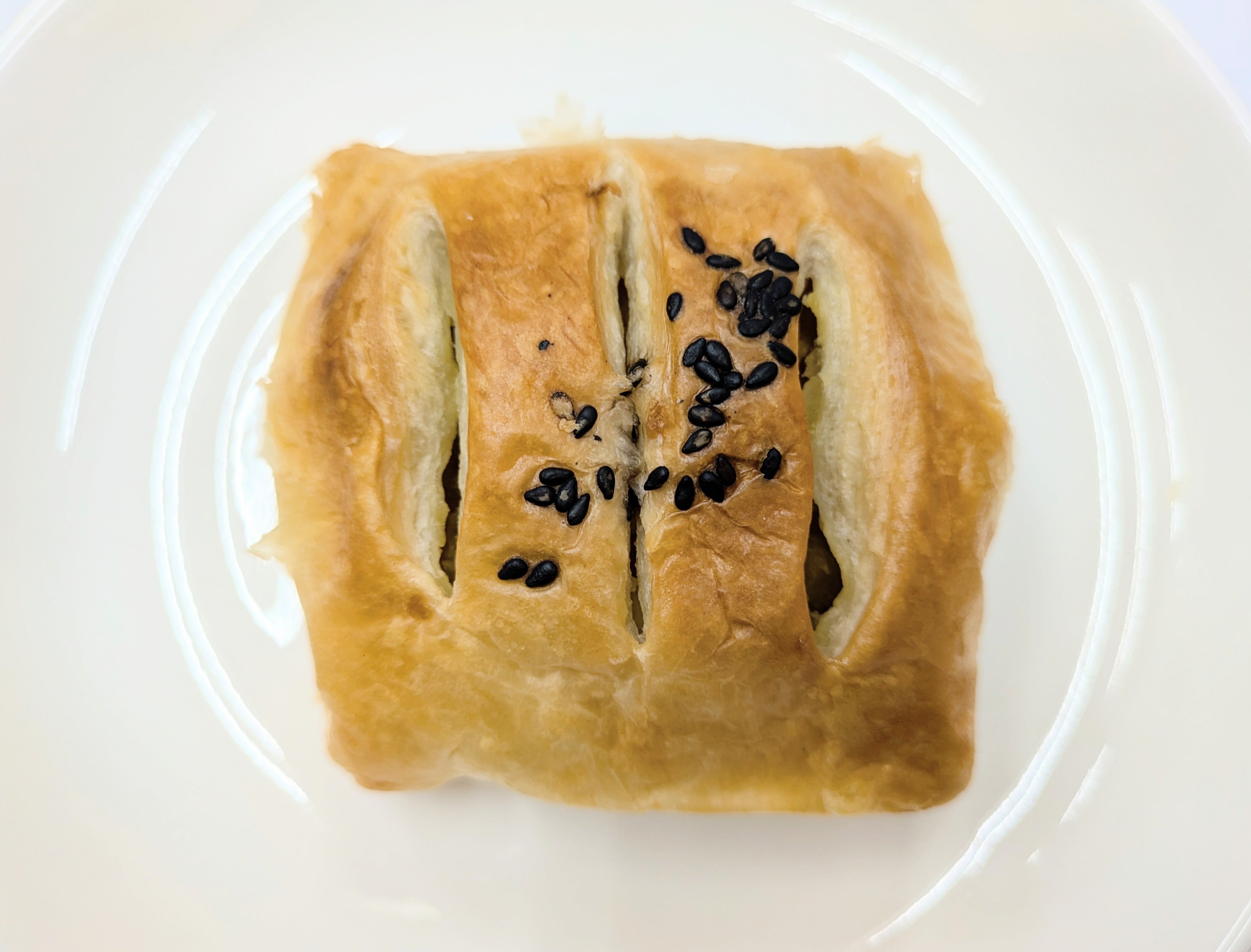 さつま芋の香り豊かな餡とダイスカットしたさつま芋をパイ生地で包んで焼き上げました。