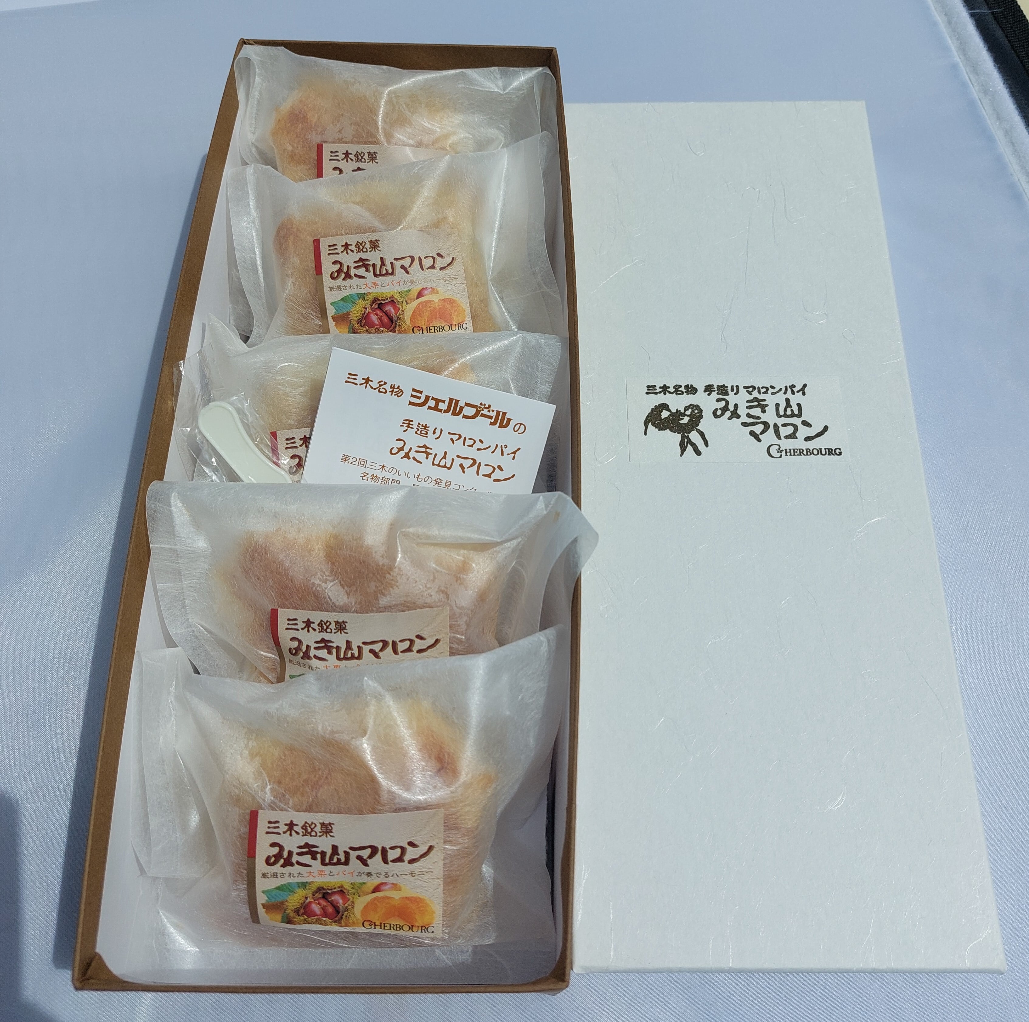 20年前に生まれたマロンパイ。贈り物で人から人へ、贈られた人からおいしいと評価を受け、多くのお客様から支持されてきました。誕生日、内祝い、お返し、お見舞い、仏事、弔事などの贈り物に最適のギフトセットです。三木市の土産としてどうぞ。