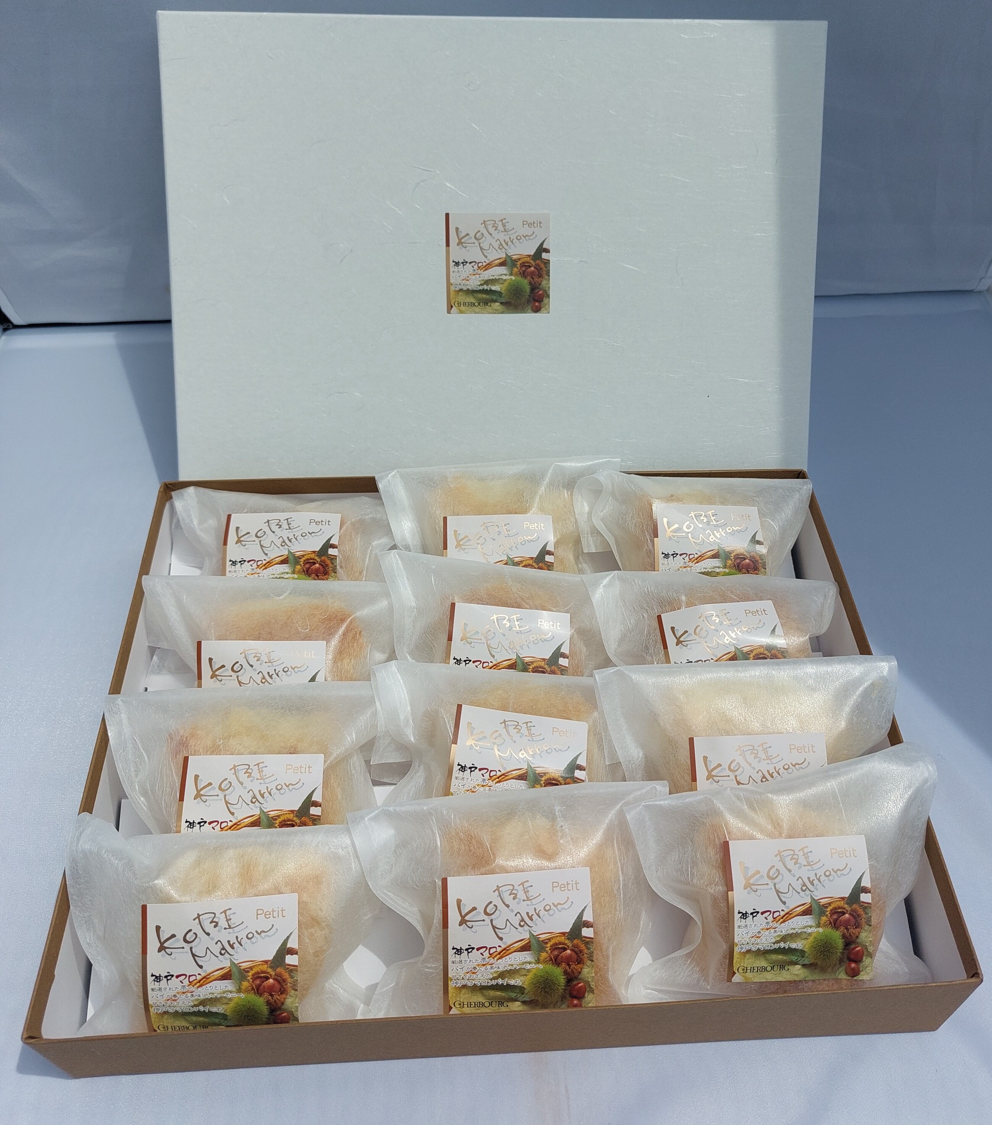 栗がまるごとひとつ入った当店の看板商品「神戸マロン」が小振りになったマロンパイです。 あらゆる品種の栗から厳選したほっこりした栗と、甘さを控えたマロン餡と長年かかって開発した特製のパイ生地とのハーモニーはやみつきになります。